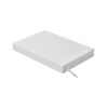 A5 daily diary notebook in 60% recycled post consumer polyester and 40% PU cover. 416 universal pages in 70gsm recycled paper (208 sheets). With matching colour polyester ribbon page marker.