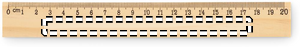 Pine wood ruler 20cm with centimetre scale on one side and inch scale on the other.