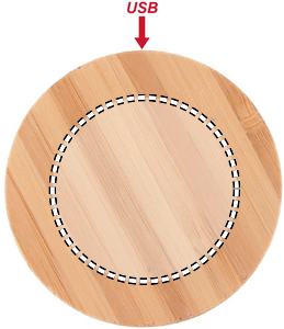 Wireless charger in bamboo. Connect device to your computer, place smartphone on it and allow it tocharge. Blue light lit when charging. Output: DC5V/1A (5W). Bamboo is a natural product, there may be slight variations in colour and size per item, which ca