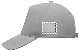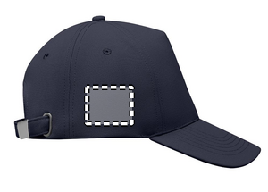 RPET 5 panel baseball cap in polyester 210 gm/m2 with silver steel buckle. 4 embroidered eyelets in matching colour. Size 7 1/4.