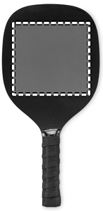 Pickle ball paddle set with 2 MDF wooden bats and 1 ball in RPET mesh drawcord pouch.