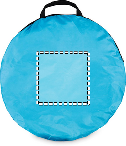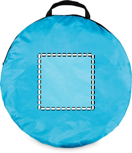 Two-person beach tent made of 190T polyester. Includes 6 steel hooks and a matching carry bag. Lightweight and easy to set up. Designed for shade and outdoor comfort.
