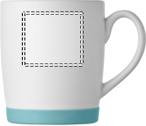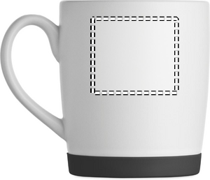Ceramic mug with white matt finish and silicone base for stability. Capacity 300ml. Individual packing in white carton box.