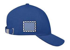 5 panel baseball cap in heavy brushed twill cotton 260 gm/m2 with silver steel buckle. 4 embroidered eyelets in matching colour. Size 7 1/4.
