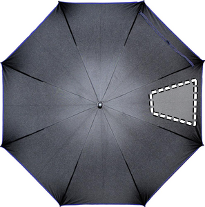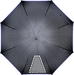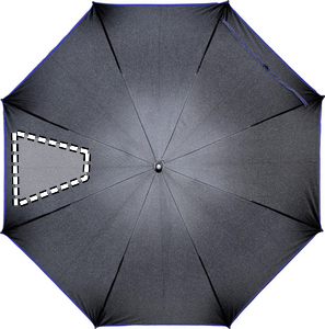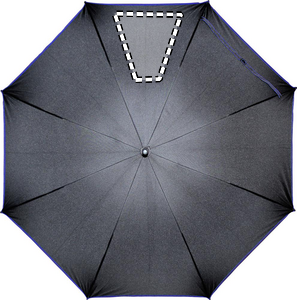 23 inch auto open windproof umbrella in 190T pongee with fiberglass shaft and ribs in colour with black plastic tips. Panels in black with matching colour stitching. Straight black plastic handle. Manual closure.
