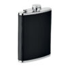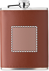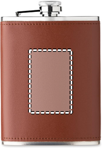 Slim hip flask in stainless steel with PU-leather cover. 200 ml capacity.