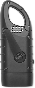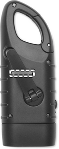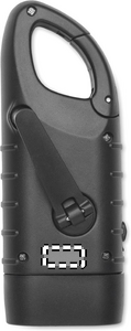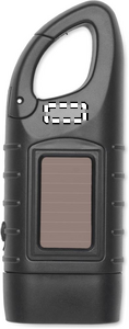 3 white LED torch powered both solar panel and dynamo crank with 40 mAh battery in recycled ABS.