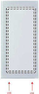 Power bank 8000 mAh in recycled aluminium and solar panel. Capacity for smartphone use, output current DC5V/1A and DC5V/2A. Includes indicating light and USB cable with micro usb plug.