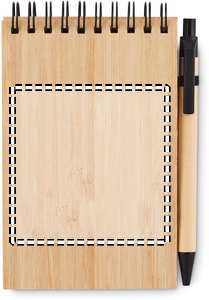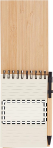 A6 bamboo cover notepad with 70 sheets of lined recycled paper. Includes a matching recycled ball pen with PLA tip and clip. Write down all your important notes during meetings at work with this handy office item. The bamboo cover gives it a nice natural touch. Both the pen and paper are made from recycled paper, making this a sustainable choice. The pen has blue ink. Bamboo is a natural product, there may be slight variations in colour and size per item, which can affect the final decoration outcome. FSC®-certified | FSC MIX, P7.7, FSC-C213206
