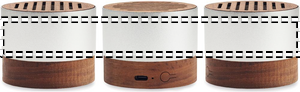 5.3 wireless speaker in recycled aluminium casing with walnut base and top detail. 1 Rechargeable Li-ION 300 mAh battery included. Output data: 3W, 3 Ohm and 5V. Playing time approx. 3h.