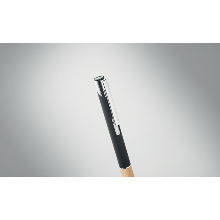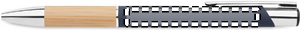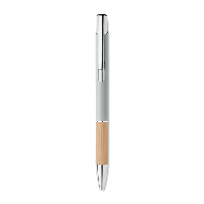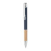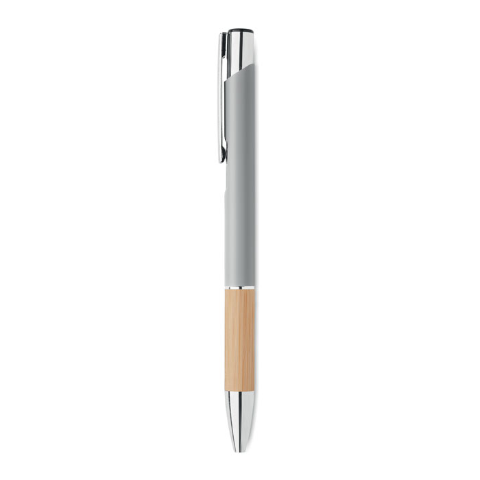 Push button pen in aluminium with bamboo grip. Blue ink.