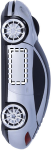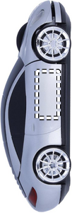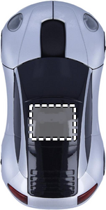 New generation wireless mouse in car shape with receiver located in the car trunk. ABS casing and black and silver shiny finish. 2 AAA batteries not included. 800 dpi.