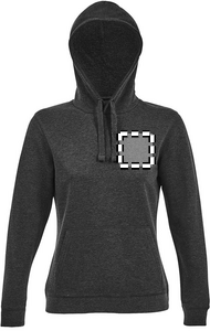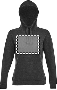 SOL'S SPENCER WOMEN, WOMEN'S HOODED SWEATSHIRT, 80% ringspun cotton - 20% polyester, Brushed lining, Outside: 100% cotton FLEECE 280 LSF (Low Shrinkage Fabric) , Front pouch pocket, Cut and sewn, Lined hood with drawcord, 2x2 ribbed cuffs and hem, Half moon inside collar, Taped neck. About sizes matching, please refer to the size chart in the product documentation section.