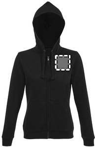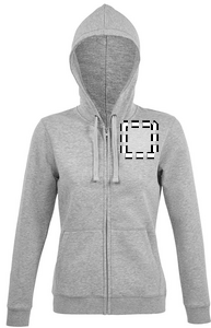 SOL'S SPIKE WOMEN. Women's zip hoodie, 80% ring spun cotton - 20% polyester Brushed lining, Outside: 100% cotton FLEECE 280 LSF (Low Shrinkage Fabric), Set-in sleeves, 2 front pouch pockets, Cut and sewn, Lined hood with tone-on-tone drawcord, 2x2 ribbed cuffs and hem. Half- moon inside collar, Taped neck, YKK zip. OEKO-TEX®. Only sold with print. About Sizes Matching, Please Refer To The Size Chart In The Product Documentation Section.