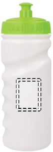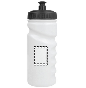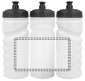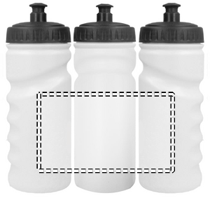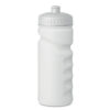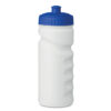 Sports drinking bottle with convenient handgrip in solid PE plastic which is BPA free. Capacity: 500 ml. Leak free.