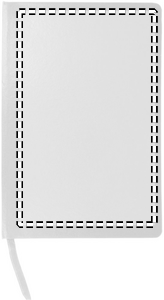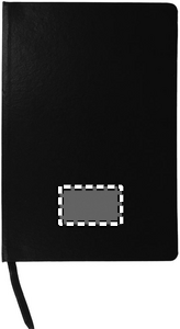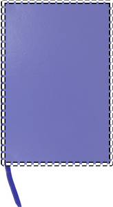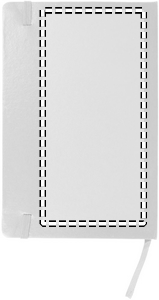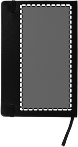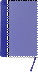 A5 notebook with hard PVC cover. Casebound. 192 squared recycled paper pages (96 sheets). Matching elastic closure strap and ribbon bookmark.