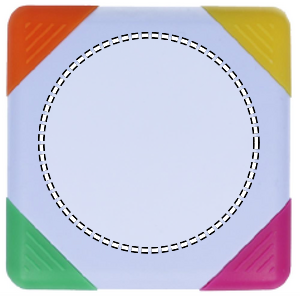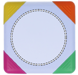 Square shaped highlighter in ABS casing. 4 colour ink: yellow, fuchsia, orange and green.