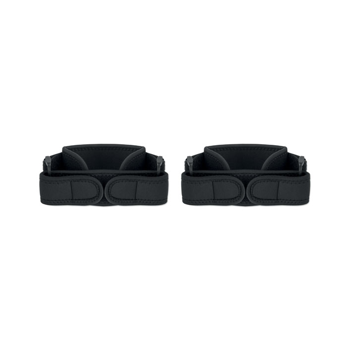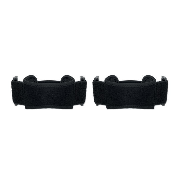 Set of 2 sports knee supports made of fabric laminated with chloroprene rubber and terry cloth backing. Soft, flexible, and supportive for active use.
