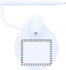 Plastic pen and holder with elastic cord. Blue ink.