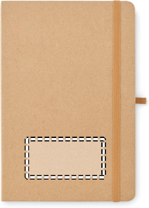 A5 notebook with cardboard cover with 80 sheets recycled paper (160 pages) 25 sheets sticky notes and 25 memo pads. Elastic closure strap and pen loop.