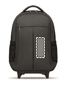 Backpack trolley in 360D 2 tone polyester. Includes one internal 15 inch laptop compartment and one main front part with zipper pocket. Padded back and shoulder straps. Includes Tablet compartment. Has an integrated sleeve for protecting the wheels when carrying.