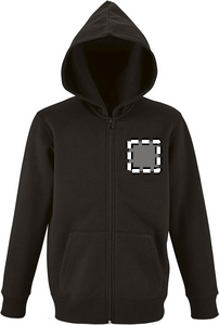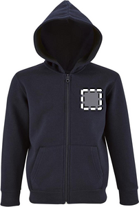 SOL'S STONE KIDS, KIDS' ZIP HOODIE, 50% Ringspun cotton - 50% polyester BRUSHED FLEECE 260, Set-in sleeves, 2 kangaroo pockets, Hood, Ribbed cuffs and bottom, Tubular. About sizes matching, please refer to the size chart in the product documentation section.