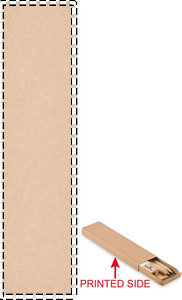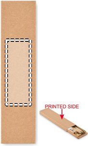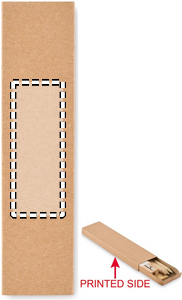 Paper box with 3 sharpened pencils, 1 wooden sharpener, 1 eraser and 1 wooden ruler.