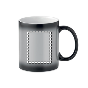 Ceramic mug of 300 ml capacity with special coating for sublimation. Mug changes colour to your personalized printing when pouring (at least) 50°C liquid into the mug. Individual packing in white carton box.