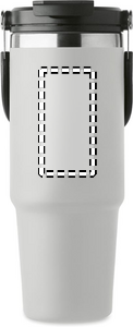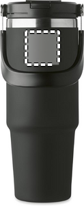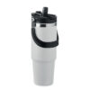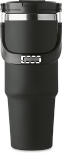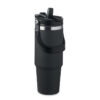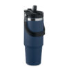 Double wall recycled stainless steel (90% recycled stainless steel and 10% stainless steel) tumbler with lid with inner straw, foldable mouth piece and direct drinking opening . Capacity 850 ml.
