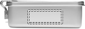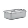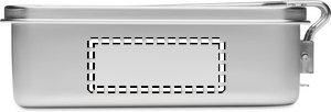 Stainless steel lunchbox with removable locking handle. Capacity: 750 ml.