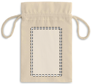 Small gift cotton draw cord bag. Size approx. 14 x 22cm. 105 gr/m².