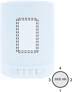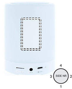 Table or camping wireless speaker with hands free function, SD card slot and regulating colour and brightness touch. 6 colours changing light. Rechargeable Li-Ion 2000 mAh. Output data: 3W. Playing time aprox. 2h.