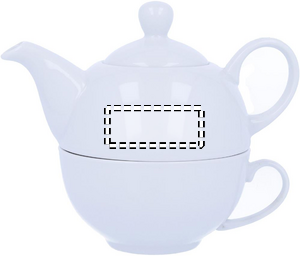 Tea set including a teapot of 400 ml capacity and a white ceramic cup. Presented in a black gift box.
