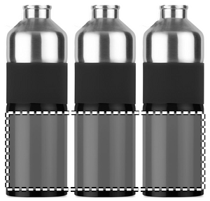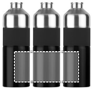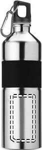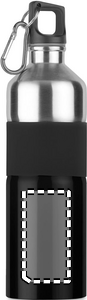 Single wall bicolour stainless steel bottle with rubber grip and carabiner hook. Capacity: 750 ml. The carabiner is not for climbing (non professional use). Leak free. As this is a single walled bottle, heat transfer can still occur.