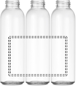 Glass bottle with bamboo lid with PU handle and RPET felt polyester pouch. Capacity: 500 ml. Bamboo is a natural product, there may be slight variations in colour and size per item, which can affect the final decoration outcome.