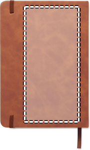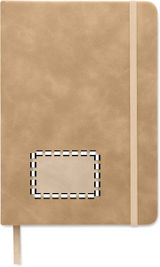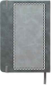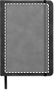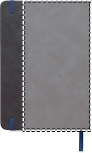 A5 notebook in 40% recycled post consumer smokey hard PU cover and 60% PU cover. Casebound. 160 lined pages, 70gsm recycled paper (80 sheets). Matching elastic closure strap and ribbon page marker.