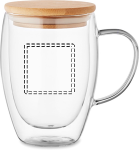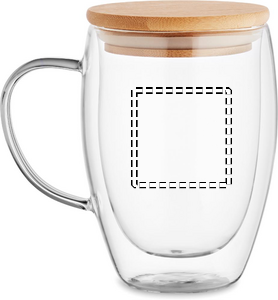 Double wall borosilicate glass mug with handle and bamboo. Capacity: 350 ml.