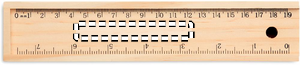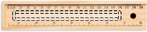 12 pieces stationery set with 2 pencils, 6 colouring pencils, 1 sharpener, 1 eraser and ruler incorporated in the lid of the wooden box.
