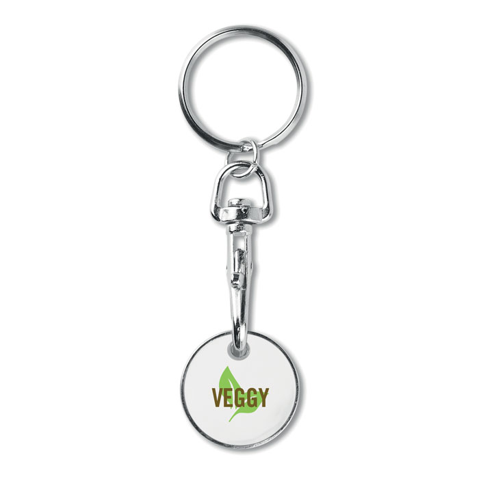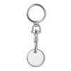 Metal key ring trolley euro token. With imitation enamel coating on the front side. Size Ø23,2x2,1 mm thickness.