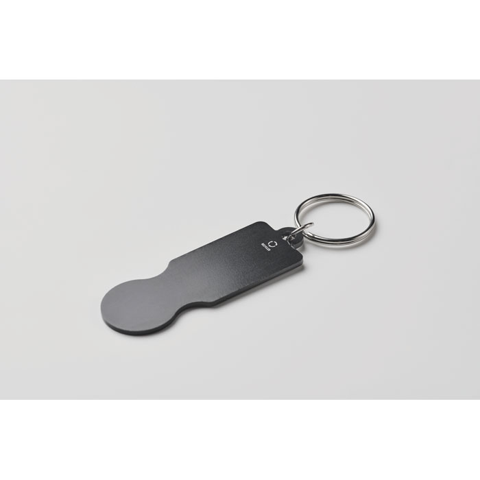 Trolley token with key ring in recycled aluminium.