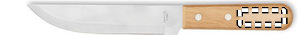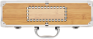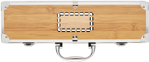 Set of 3 stainless steel barbecue tools. Knife, fork and sharpening tool with wooden handles in aluminium case. Presented in wooden look aluminium case.