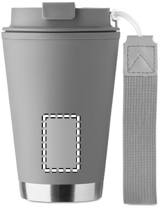 Double wall tumbler in PP inner wall, recycled PP outside wall, recycled stainless steel detail and RPET wrist strap. Capacity: 300 ml.