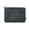 RPET felt 14 inch zippered laptop bag with zippered front pocket. Take your laptop or tablet with you in this protective sleeve. The front pocket makes it easy to store smaller items such as pens or notes, making it ideal for use at the office. The bag is made from recycled PET plastic.