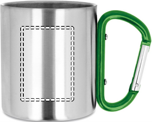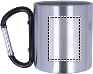 Double wall stainless steel mug, with carabiner handle. Capacity: 220 ml.