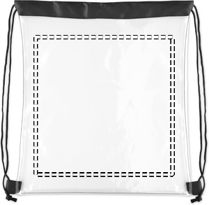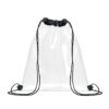 Transparent drawstring bag in EVA and PVC. Polyester cords.