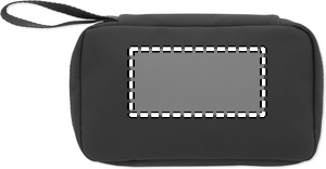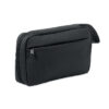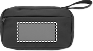 Toiletry bag in 600D RPET with PU coating, RPET mesh and 210D RPET lining. Features front zippered main compartment pocket, inner mesh and open pockets.