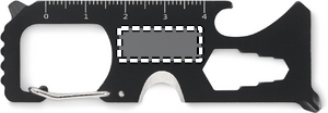 Stainless steel multi-tool pocket card tool. 8 functions. It includes: tooth saw, wire cutter, spanner, Phillips screwdriver, slotted screwdriver, measuring scale, bottle opener and key chain.