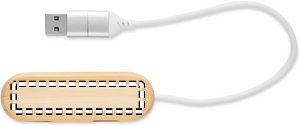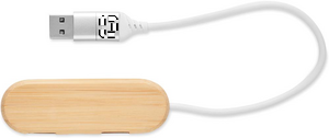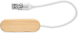 3 port 2.0 Type-C USB hub in bamboo case. Input: 2 in 1 cable connection. Cable length 24 cm. Bamboo is a natural product, there may be slight variations in colour and size per item, which can affect the final decoration outcome.