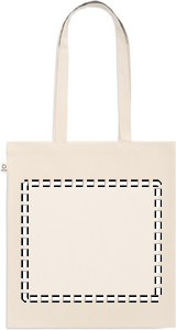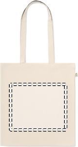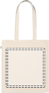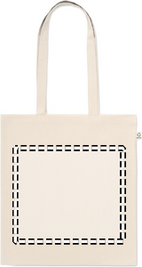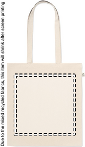Recycled pre-consumer cotton shopping bag (70% recycled cotton and 30% RPET) with long handles. 140 gr/m². This item can shrink after printing.