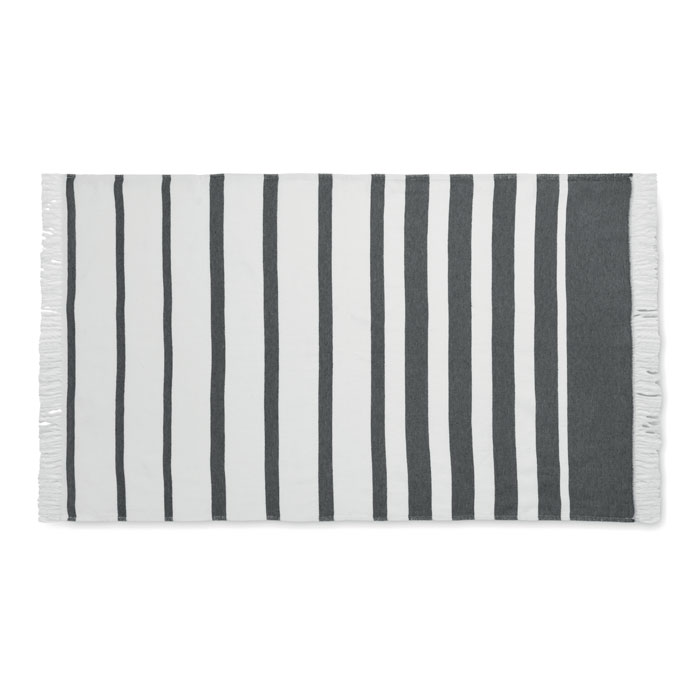 Recycled fabrics hammam or beach towel. 70% recycled cotton and 30% recycled polyester SEAQUAL® YARN. 300 gr/m². 100x170 cm. SEAQUAL INITIATIVE works with ocean clean-ups around the world to bring value to the waste that hey recover. Made in EU.